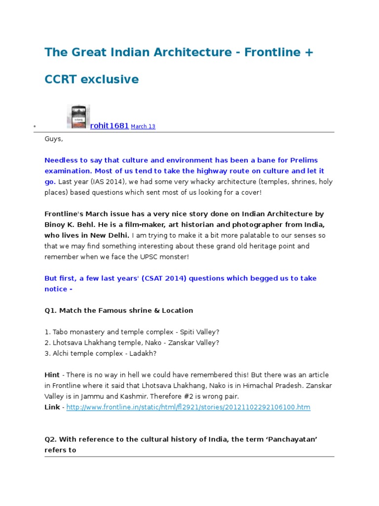 Ccrt Indian Architecture : Imf Offers Debt Relief To 25 Struggling Nations Rthk : See more ideas about indian architecture, architecture, hindu temple.. Temples before that were made of wood. Wooden forms, however, affected work in other mediums and were. Architecture in india surveys the contemporary condition of the country's built environment, showcasing a range of innovative projects and the diverse materials and unconventional forms. The practice has executed projects for educational research institutions in india and specializes in low energy sustainable architecture. A masterpiece of indian architecture is the rajarani temple of bhubaneswar, a work of exquisite grace in which the masses of the jagamohana and the vimana are admirably combined to express perfection.
