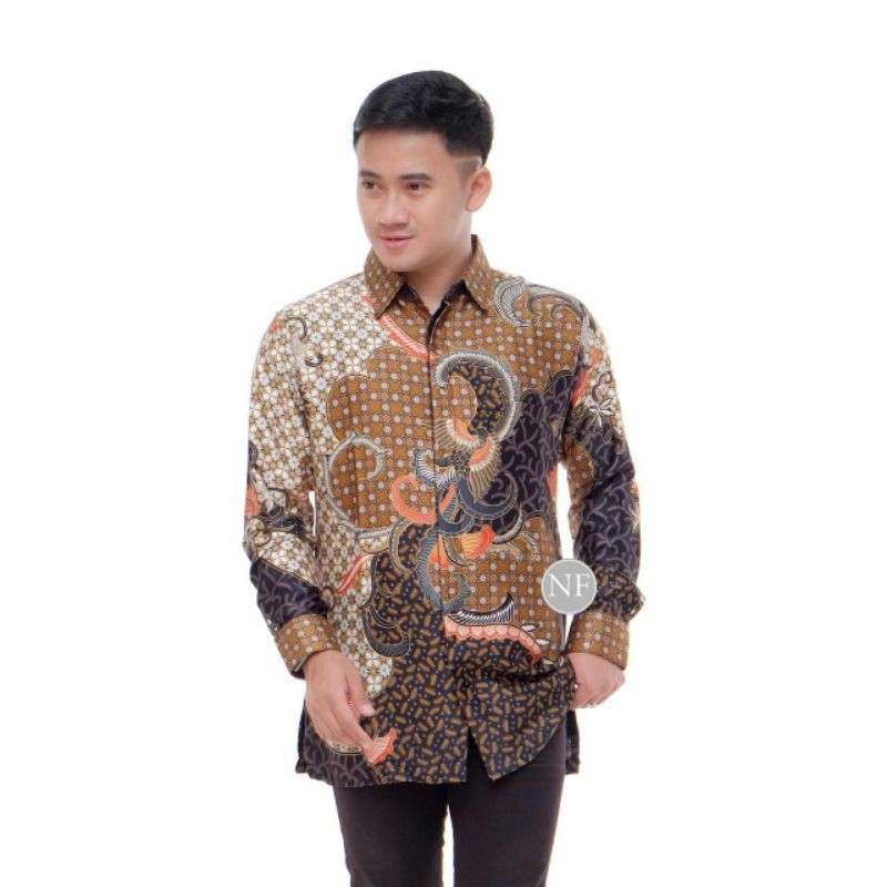 Kemeja batik semi sutra dengan kode bp212, merupakan batik printing yang terbuat dari bahan semi sutra.